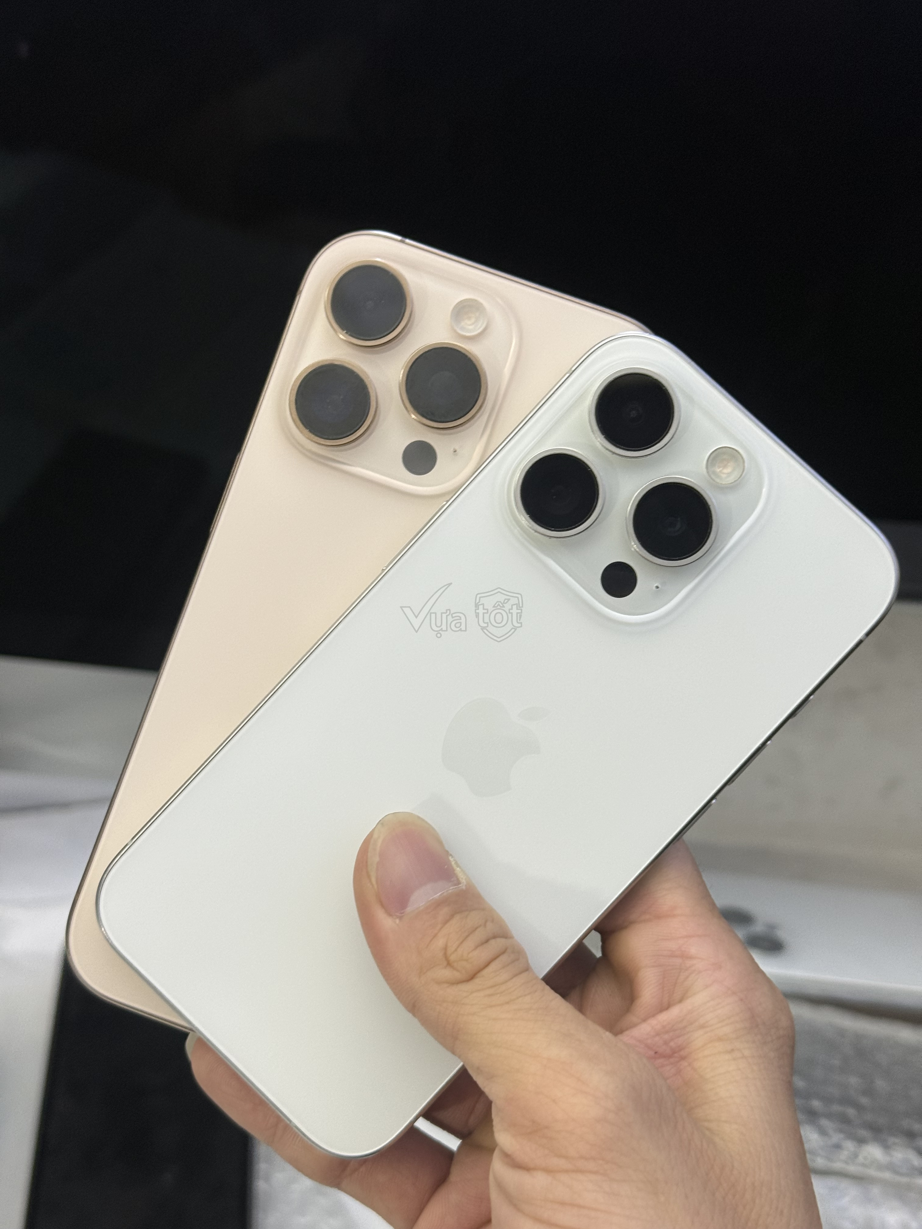 Iphone 15 pro 256gb trắng lla 99, ké 16 pro sa mạc