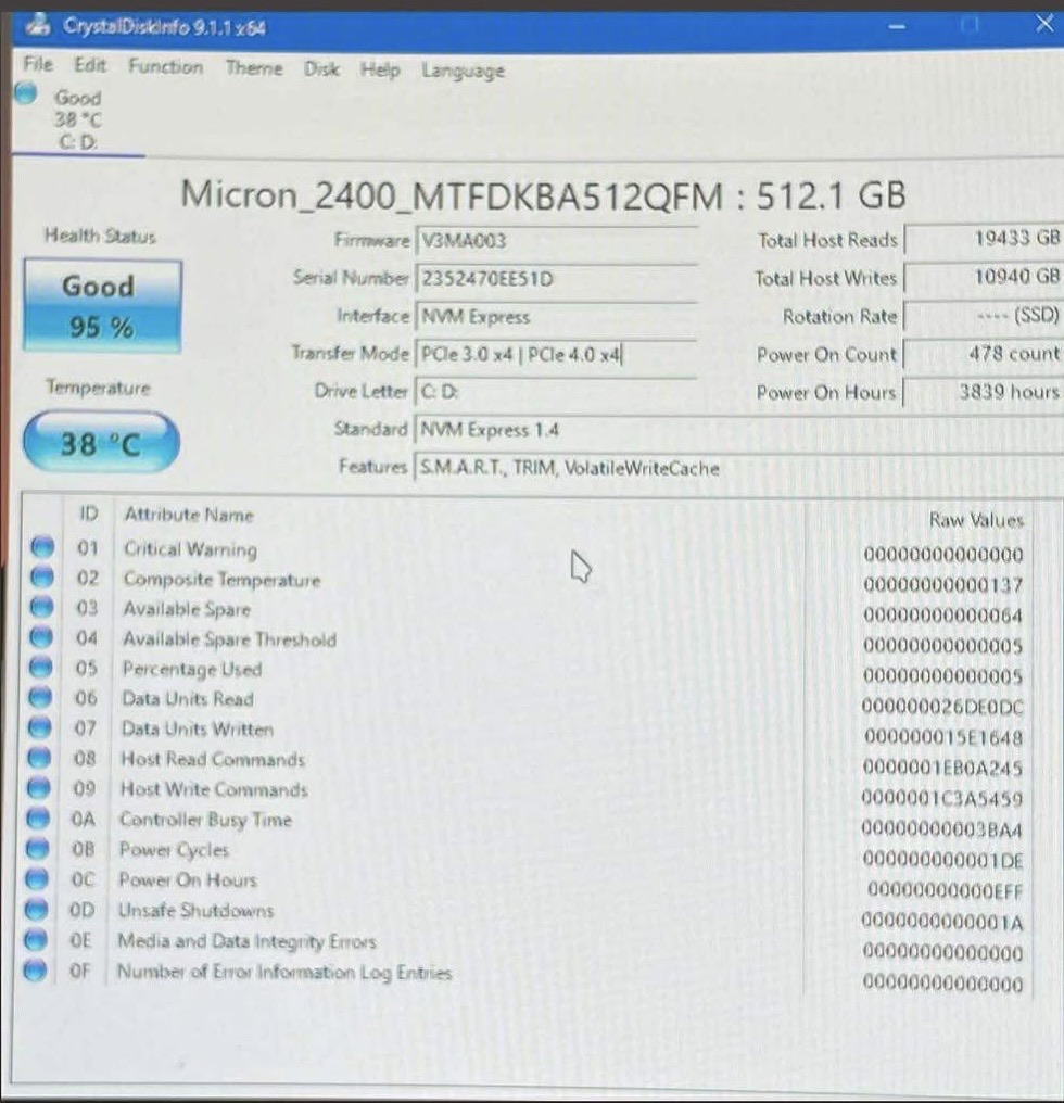 Ổ Nvme WD 512Gb-Gen4x4-Sk100% Likenew (Hàng tháo máy bộ)